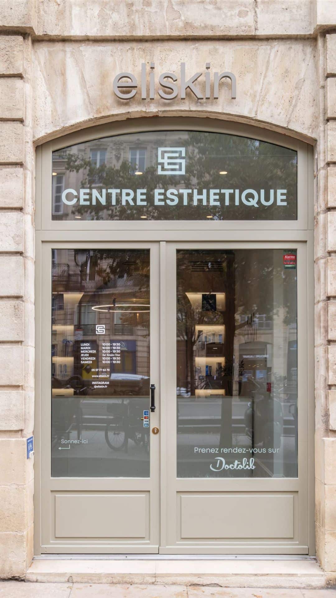 Entrée du cabinet d'esthétique eliskin, quartier Triangle d'Or Bordeaux